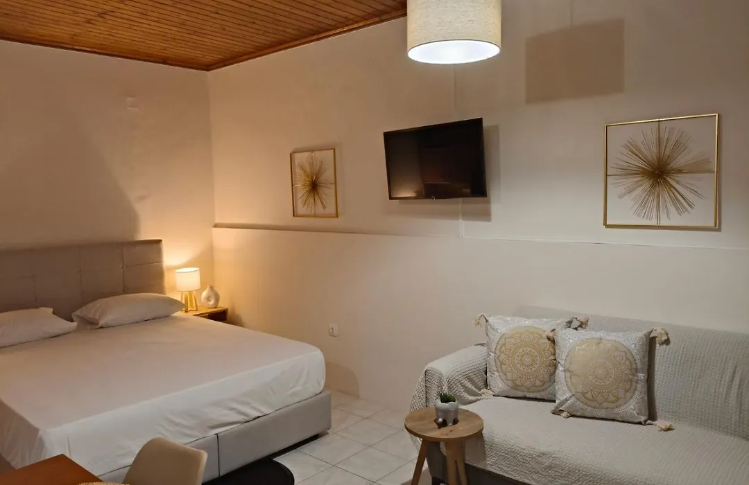 Bu dairede buzdolabı, fırın ile donatılmış ufak mutfak bulunmaktadır. 28 m² daire, Korfu Uluslararasi havalimanına 5 km yakınlıkta bulunmaktadır.